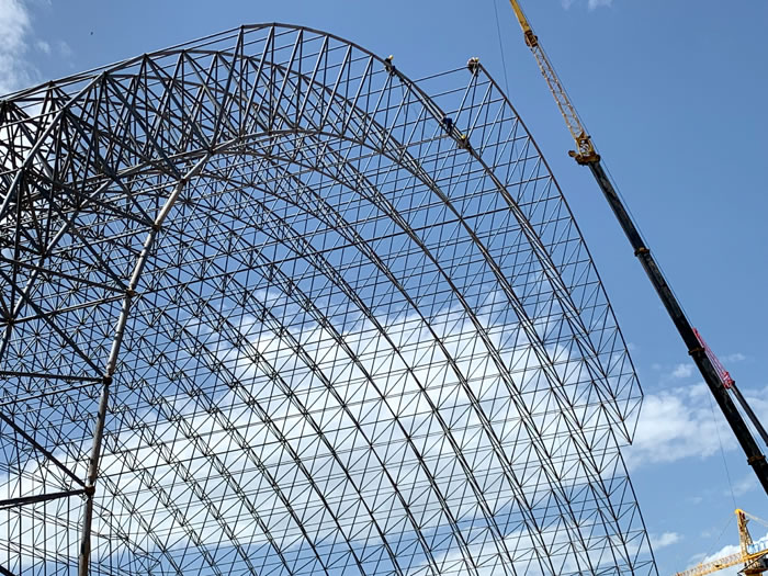 (2)网架加工前应对现场尺寸进行复测,确认无误后方可进行加工、安装;网架制作、运输、安装应遵守《空间网格结构技术规程》JGJ7-2010、《钢网架西昌螺栓球节点》JG/T 10-2009、《钢网架西昌螺栓球节点用高强度螺栓》 GB/T 16939-2016、《西昌钢结构西昌工程西昌施工规范》 GB50755-2012、《西昌钢结构西昌工程施工质量验收标准》 GB50205-2020。